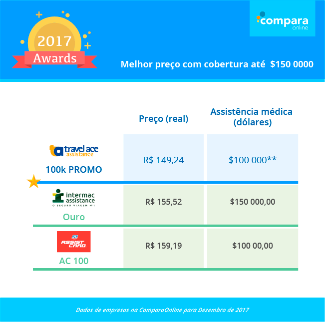 Quer saber qual é o Melhor Seguro Viagem EUA? Então, você chegou ao blog certo! Fim do ano se aproxima e com ele vem o CamparaOnline Awards! Usamos o nosso comparador para buscar os melhores seguros de viagem para os Estados Unidos 2017. Comparamos preço, coberturas e avaliação dos clientes. Confira aqui os ganhadores!